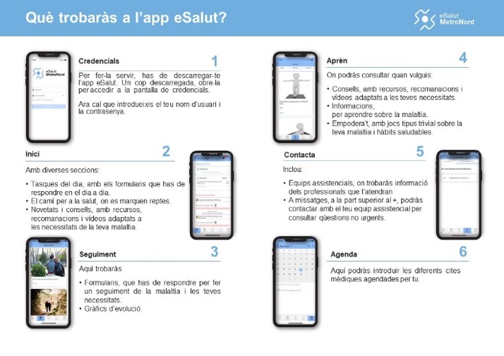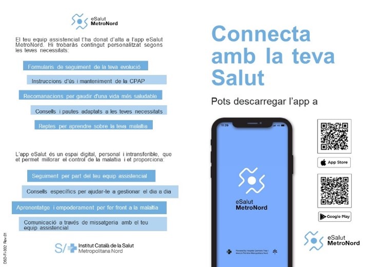 Díptic informatiu: Document que s'entrega als pacients en el qual s'explica quin tipus de continguts trobaran a l'aplicació eSalut.
