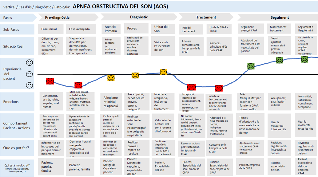 Pacient Journey: Mapa de l’experiència del pacient durant tot el procés, amb anàlisi, des de la seva perspectiva, de com viu cada interacció o decisió.